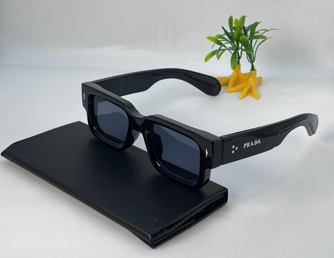 These are bold, luxury-style sunglasses with a strong, modern look. The frame is thick and glossy black, giving it a premium and durable feel. The shape is rectangular with slightly softened edges, making it stylish and suitable for both casual and upscale wear.